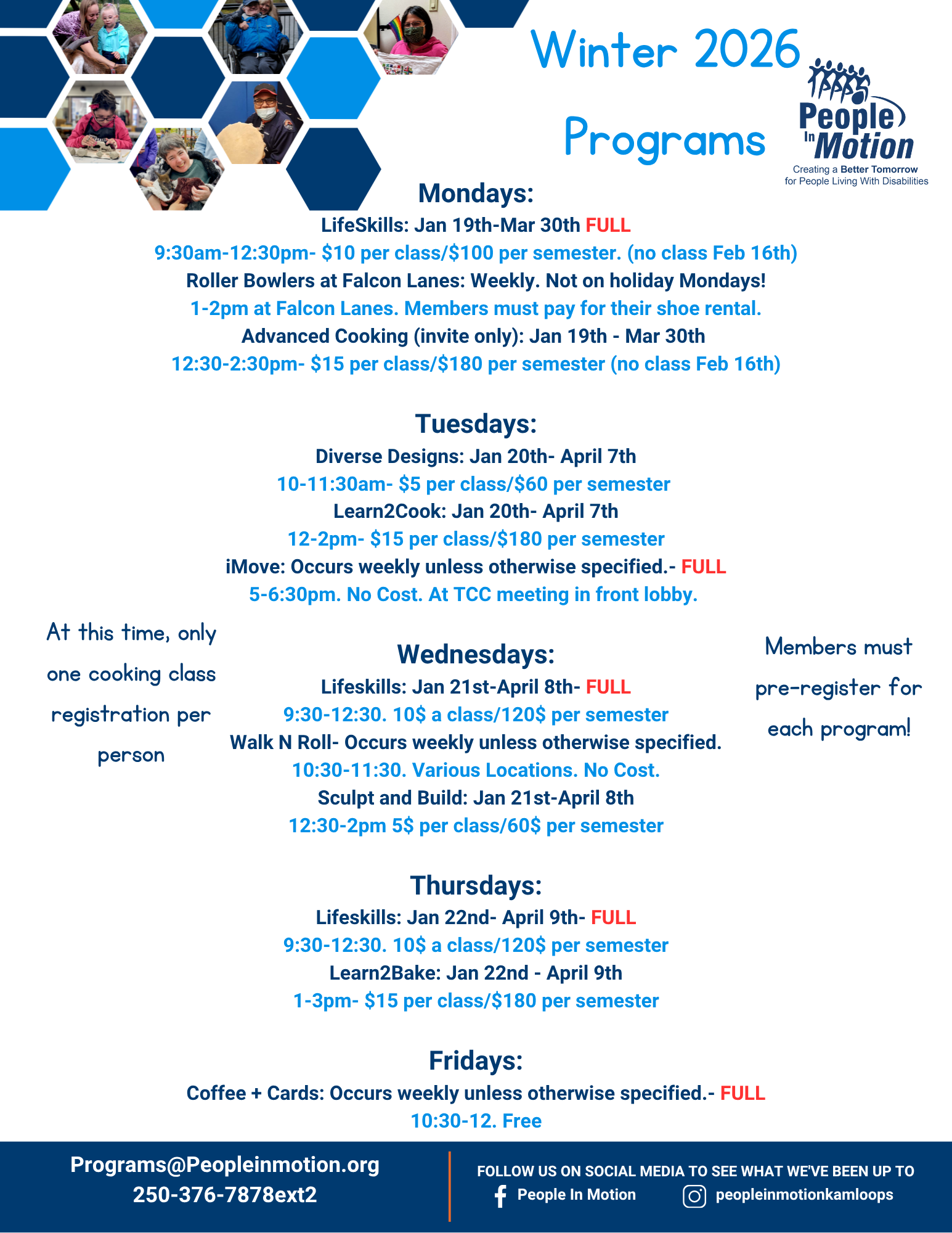 We offer inclusive, active, and educational member-driven programs for people living with disabilities. For more information check out our Programs page.